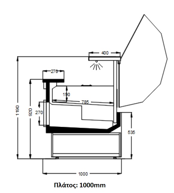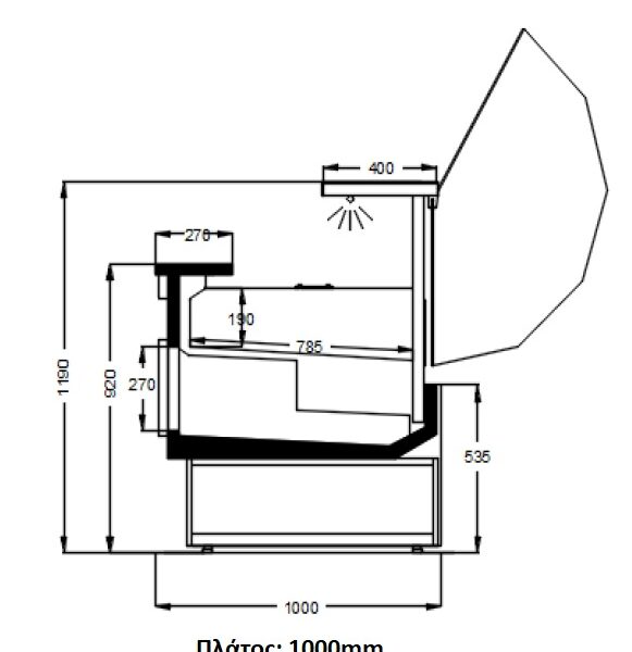 - Πλάτος 1000mm με εσωτερική επιφάνεια προβολής 785mm