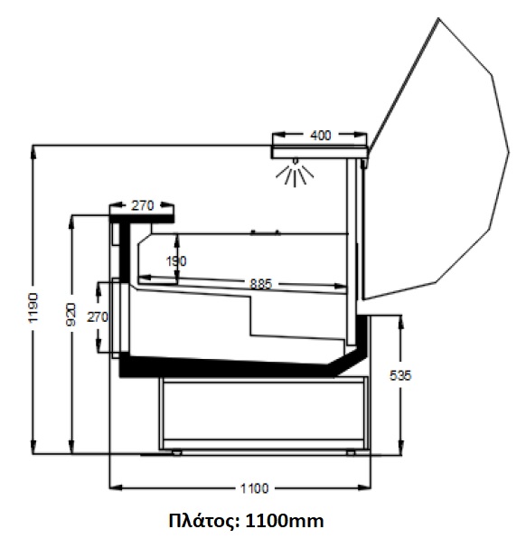 - Πλάτος 1100mm με εσωτερική επιφάνεια προβολής 885mm